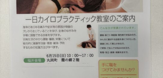 定期的に1日カイロプラクティック教室を開催しております。自分や家族の健康、またお